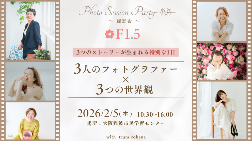 F1.5は明るく楽しい撮影会です。撮影される楽しさや、撮影する楽しさを共有するフォトシューティングパーティーを開催します。
