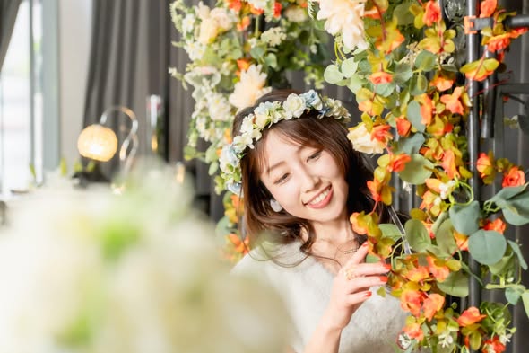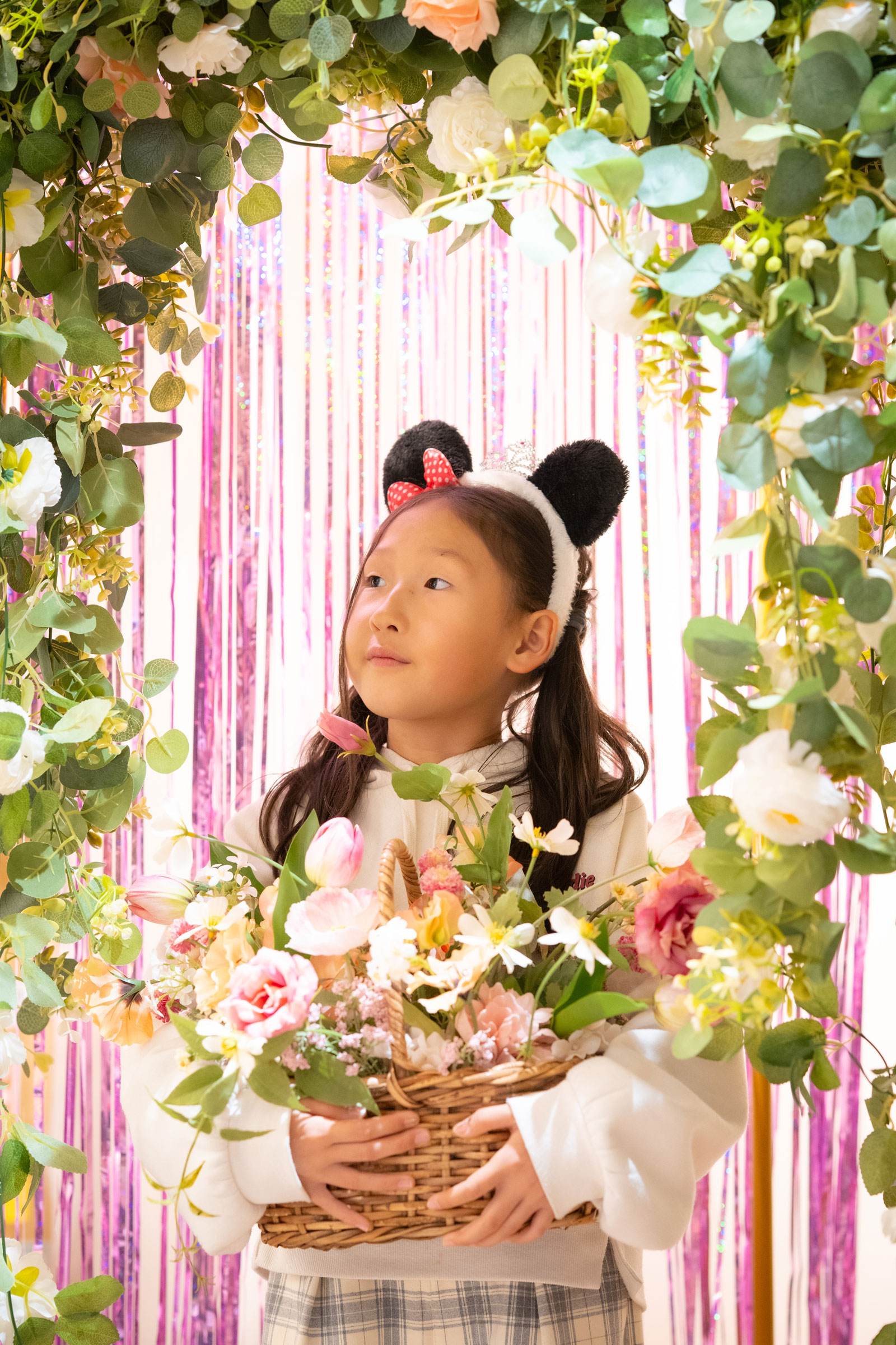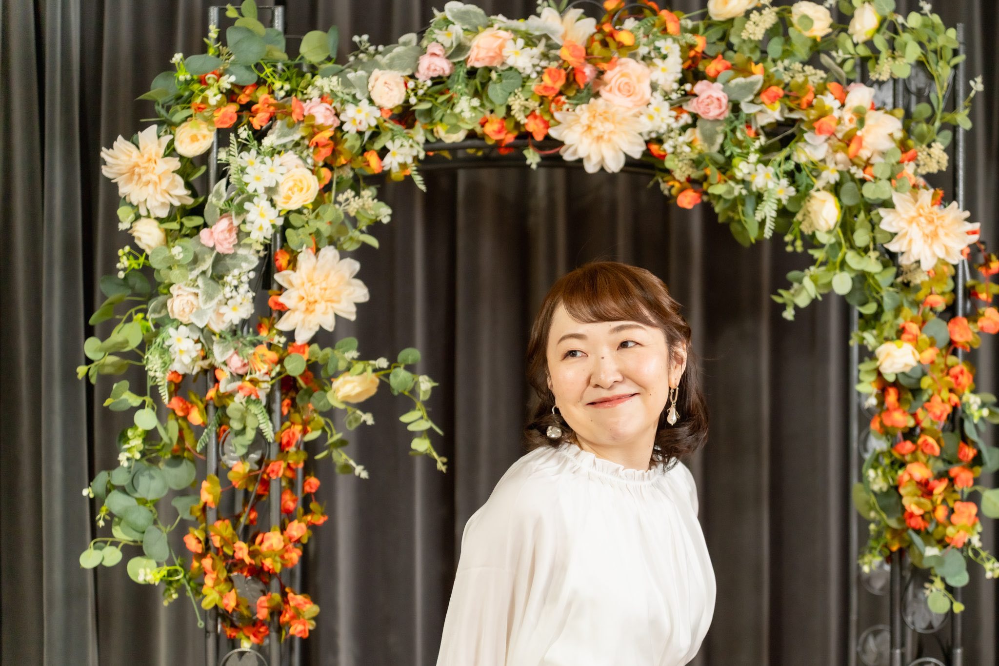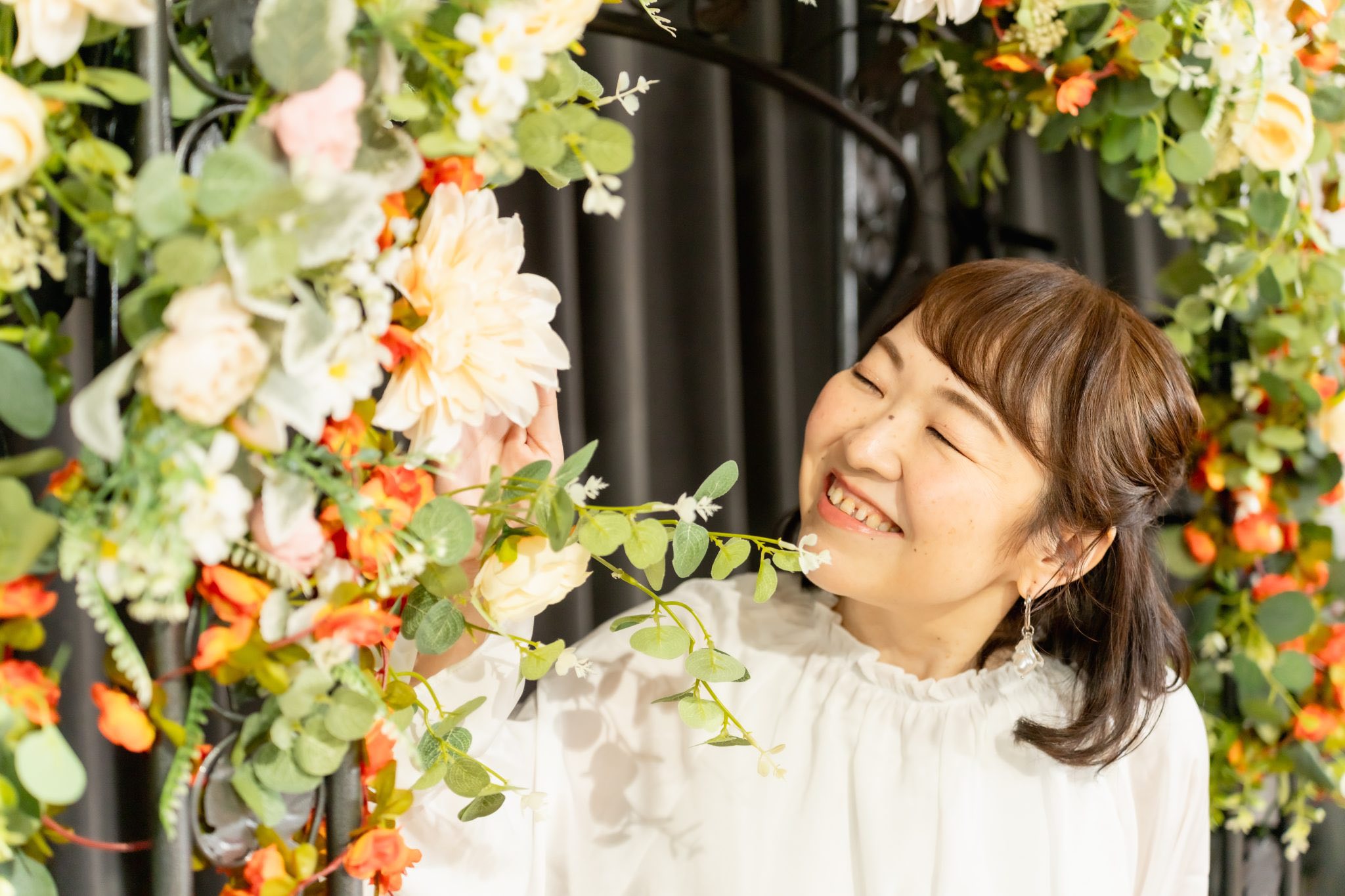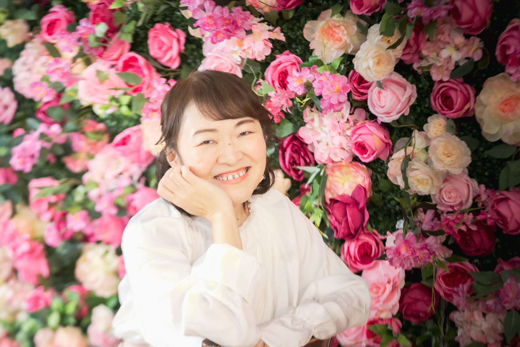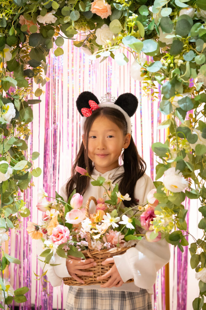 240cm x 240cmのフラワーウォールを設営し、お花の世界観で撮影できます。