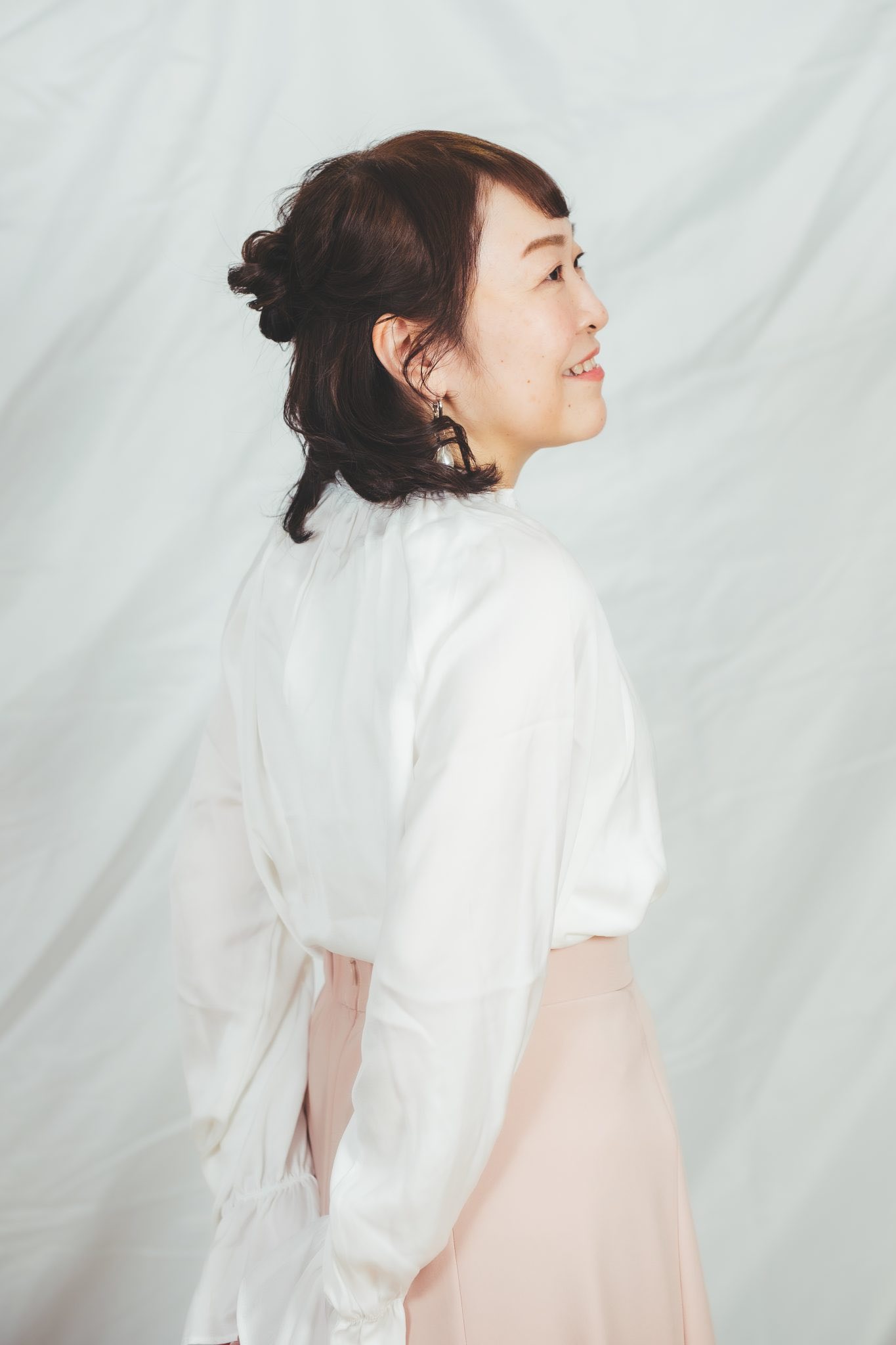 プロフィール写真にも使える白いドレープ背景を用意します。